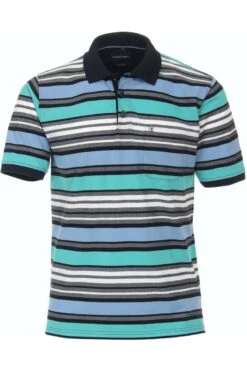 Schönes Casa Moda Casual Fit Poloshirt in der Farbe türkis, Gestreift. Ein tolles, vielseitig kombinierbares Poloshirt von Casa Moda, das sehr angenehm zu tragen ist. Das Material ist ein feines Piqué-Gewebe aus 50% Baumwolle / 50% Polyester.