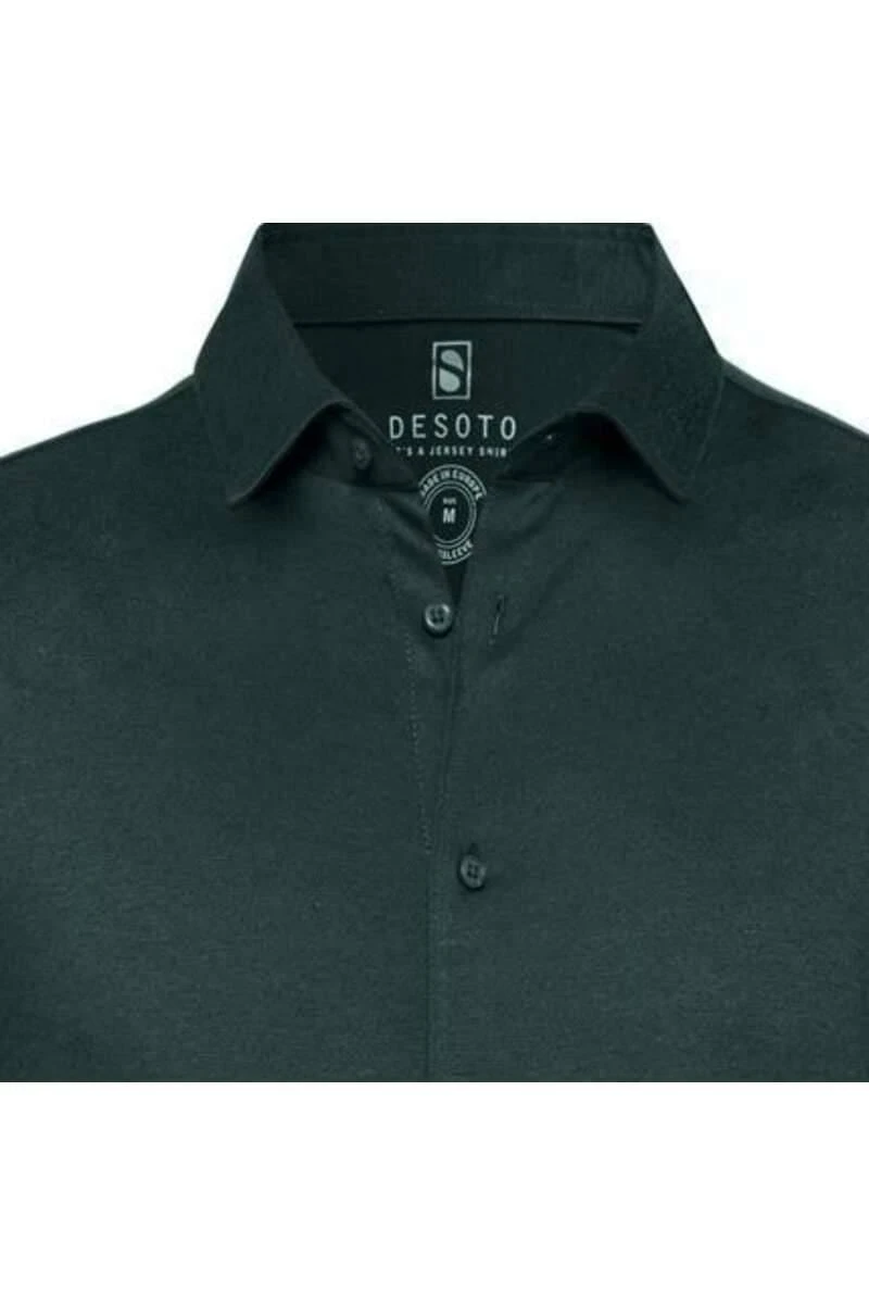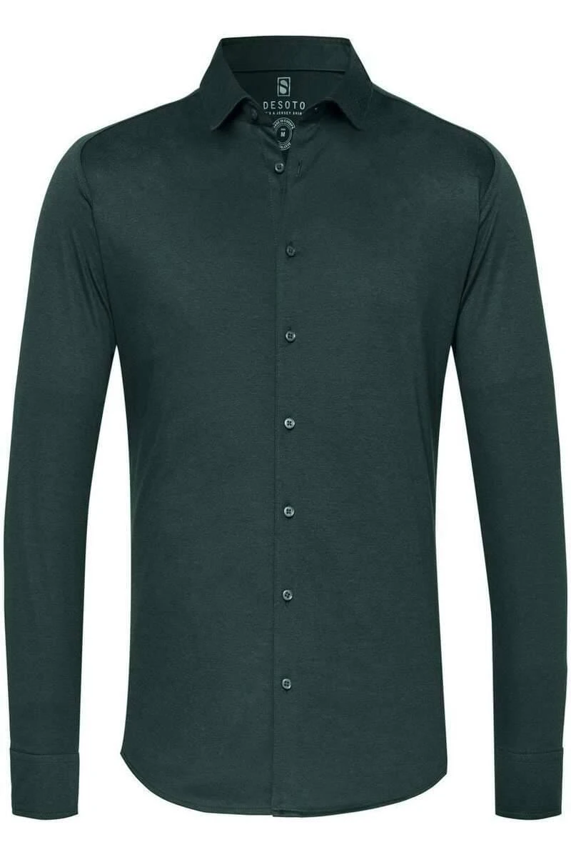 Das Desoto Slim Fit Jerseyhemd in dunkelgrün, Einfarbig für einen modernen Casual Look. Das Hemd ist in der taillierten Slim Fit Passform geschnitten und passt perfekt für Männer mit schlanker, sportlicher Figur. Das Jerseyhemd besitzt eine natürliche Stretchfunktion und ist einem sehr weichen Piqué-Gewebe, hochwertig verarbeitet und Pflegeleicht.