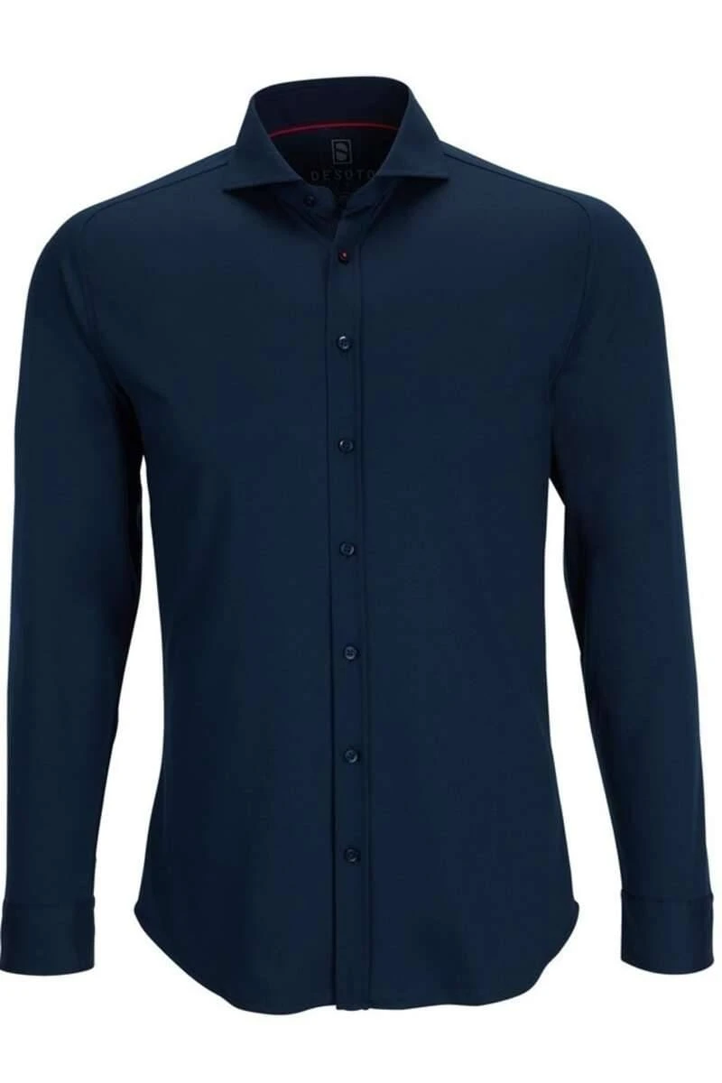 Das Desoto Slim Fit Jerseyhemd in navy, Einfarbig für einen modernen Casual Look. Das Hemd ist in der taillierten Slim Fit Passform geschnitten und passt perfekt für Männer mit schlanker, sportlicher Figur. Das Jerseyhemd besitzt eine natürliche Stretchfunktion und ist einem sehr weichen Jersey-Gewebe, hochwertig verarbeitet und Pflegeleicht.