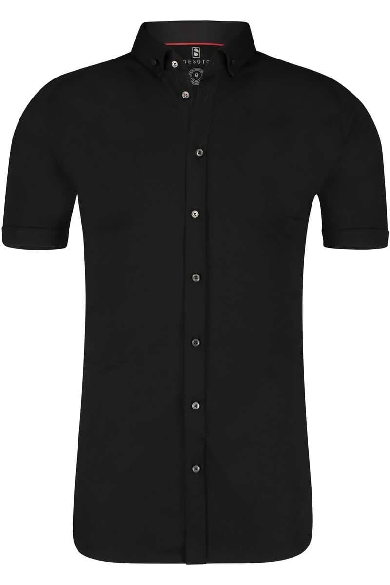 Die Materialzusammensetzung des Desoto Slim Fit Jerseyhemd ist 100% Baumwolle und die Armlänge ist Kurzarm.