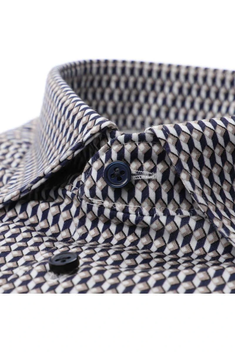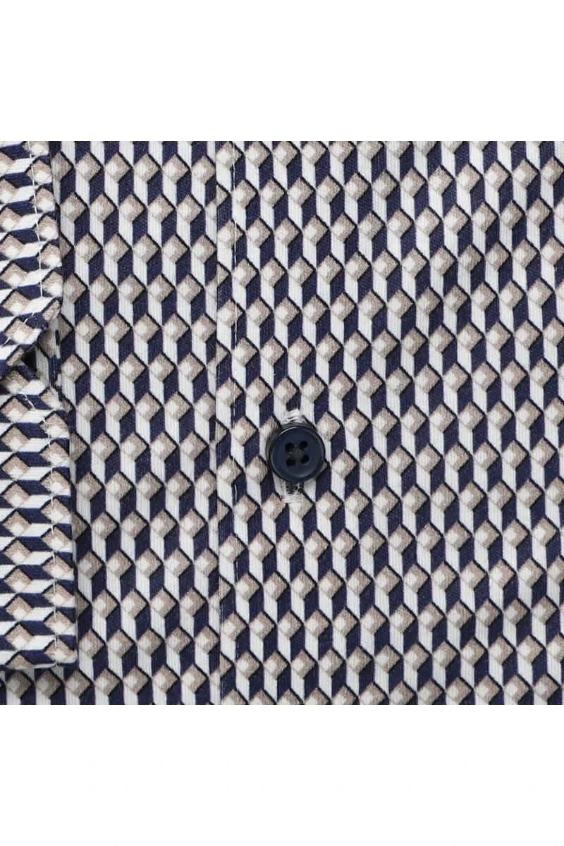 Das Desoto Slim Fit Jerseyhemd in weiss/blau/braun, Gemustert für einen modernen Casual Look. Das Hemd ist in der taillierten Slim Fit Passform geschnitten und passt perfekt für Männer mit schlanker, sportlicher Figur. Das Jerseyhemd besitzt eine natürliche Stretchfunktion und ist einem sehr weichen Jersey-Gewebe, hochwertig verarbeitet und Pflegeleicht.