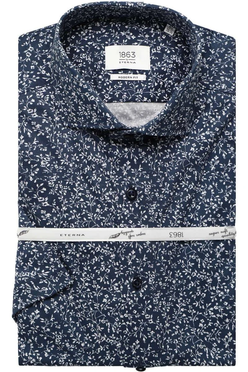 Das ETERNA Modern Fit Hemd mit einem Haifischkragen, in der Farbe marine – Gemustert. ETERNA Modern Fit Hemden sind selbstglättend und stets Pflegeleicht. Kompromisslose Qualität. Hemden von Eterna sind nach dem höchsten Öko-Tex Standard 100+ zertifiziert und werden auch so produziert. Die Kollektion Modern Fit deckt bei ETERNA die Passform zwischen Comfort Fit und Slim Fit ab und sorgt für Männer mit normaler Figur entsprechend Bewegungsfreiheit.