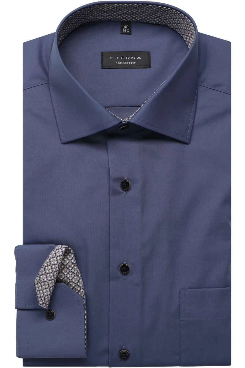 Komfortable Passform. Das ETERNA Comfort Fit Hemd mit einem Kentkragen, in der Farbe blau – Einfarbig.