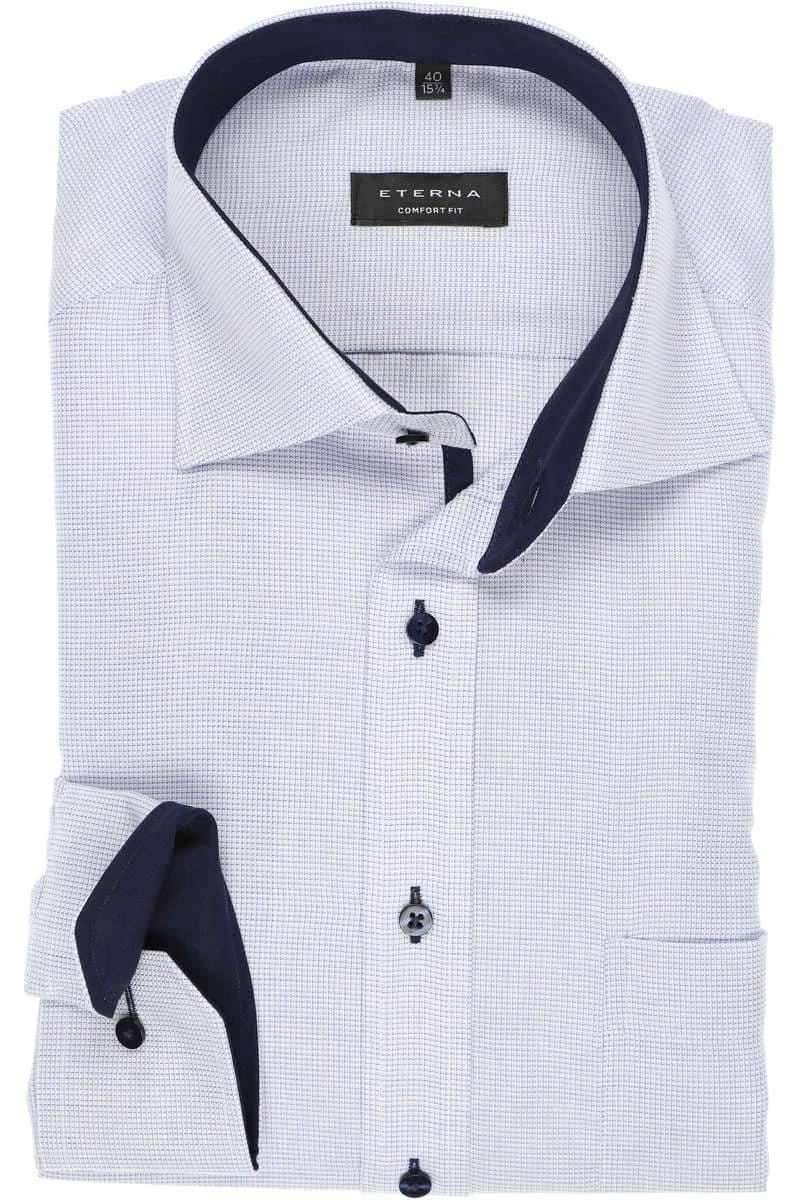 Komfortable Passform. Das ETERNA Comfort Fit Hemd mit einem Classic Kentkragen, in der Farbe blau/weiss – Strukturiert.