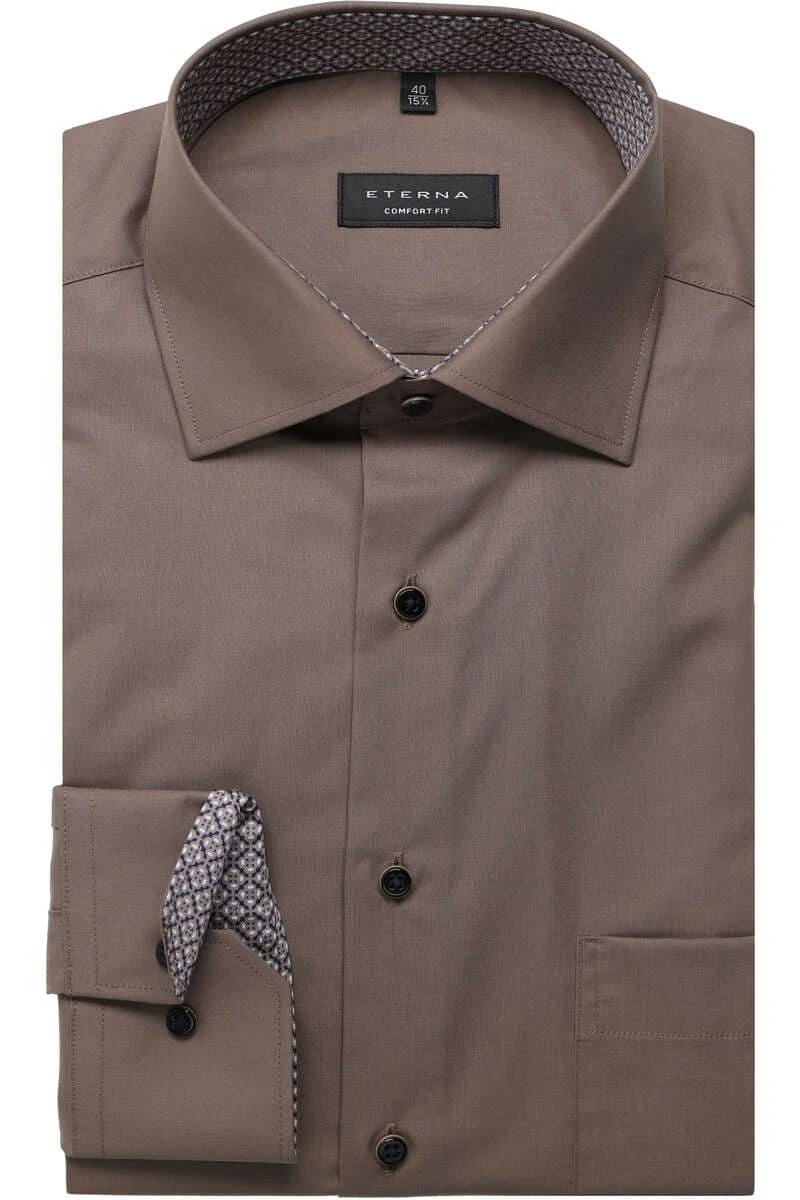 Komfortable Passform. Das ETERNA Comfort Fit Hemd mit einem Kentkragen, in der Farbe steingrau – Einfarbig.
