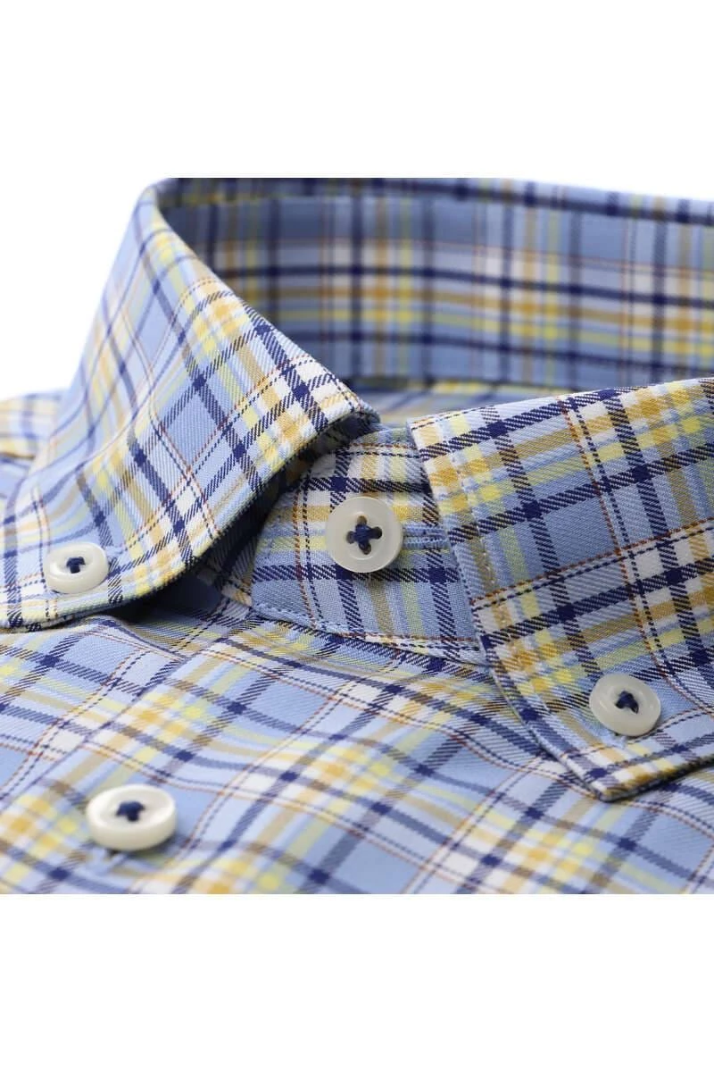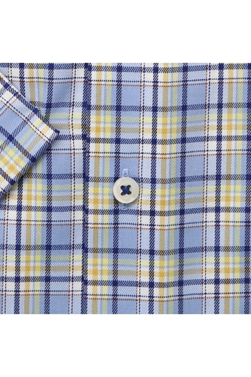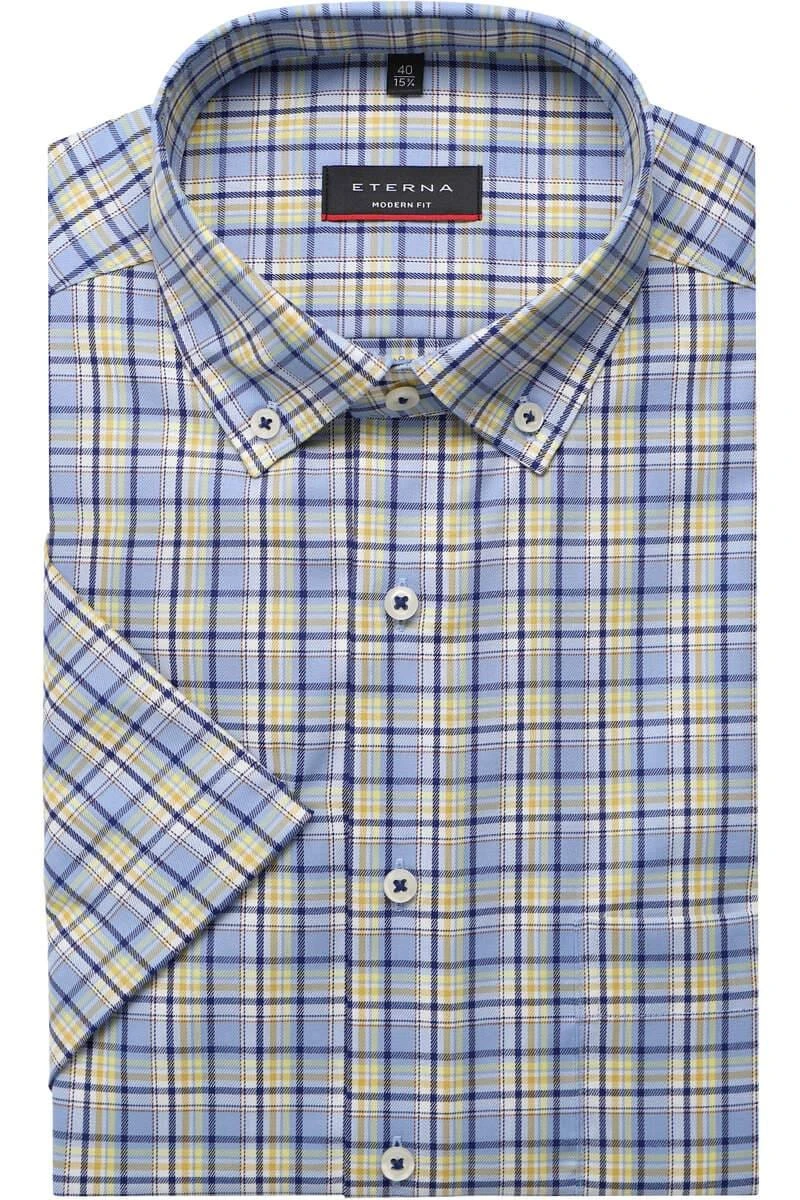 Das ETERNA Modern Fit Hemd mit einem Button-Downkragen, in der Farbe mittelblau – Kariert. ETERNA Modern Fit Hemden sind selbstglättend und stets Bügelfrei. Kompromisslose Qualität. Hemden von Eterna sind nach dem höchsten Öko-Tex Standard 100+ zertifiziert und werden auch so produziert. Die Kollektion Modern Fit deckt bei ETERNA die Passform zwischen Comfort Fit und Slim Fit ab und sorgt für Männer mit normaler Figur entsprechend Bewegungsfreiheit.