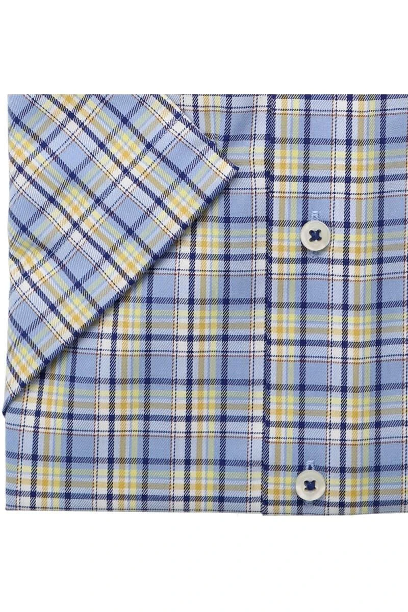 Ein ETERNA Modern Fit Hemd in Kurzarm aus einem Twill – Stoff, das zudem atmungsaktiv ist, Feuchtigkeit absorbiert und die gefühlte Temperatur am Körper ausgleicht.