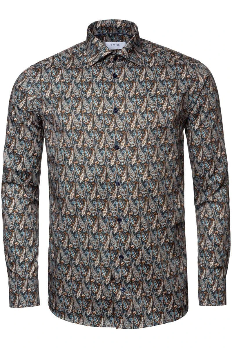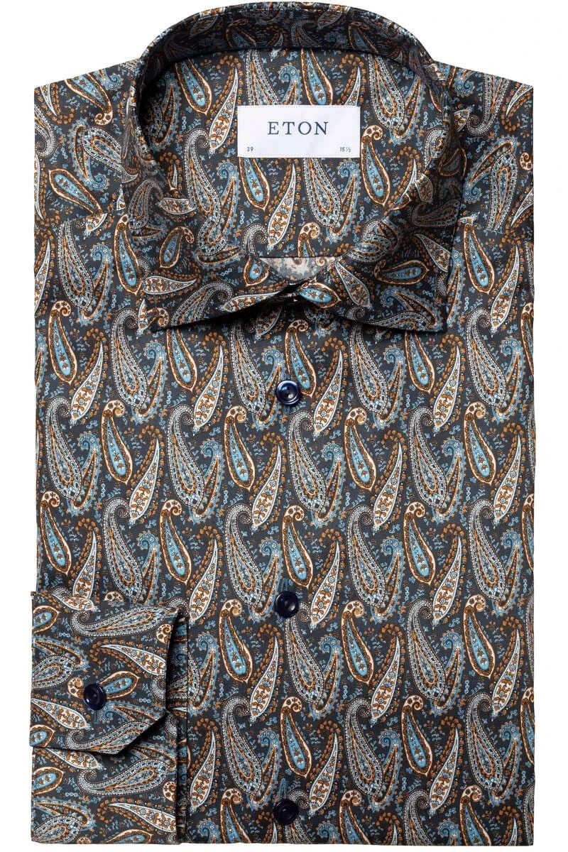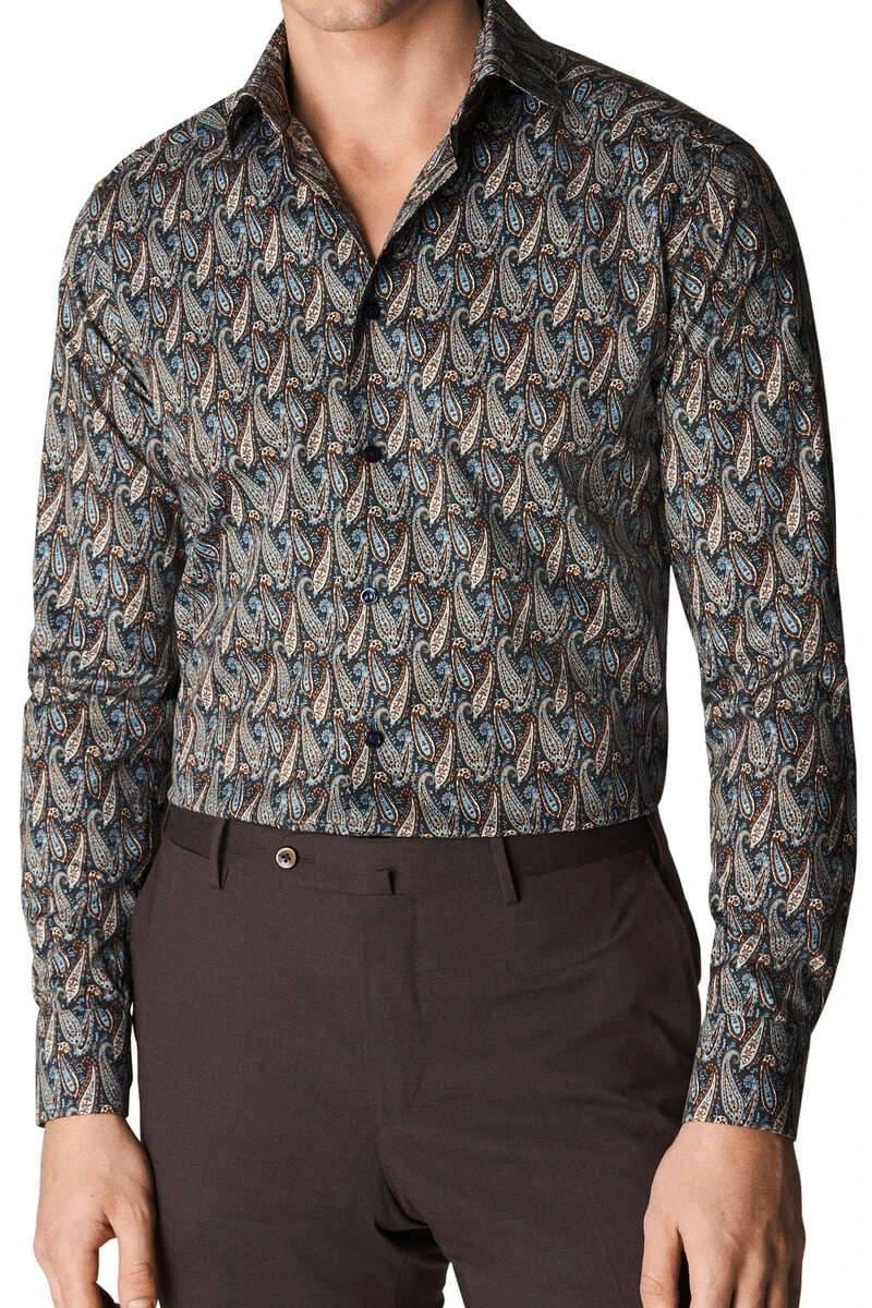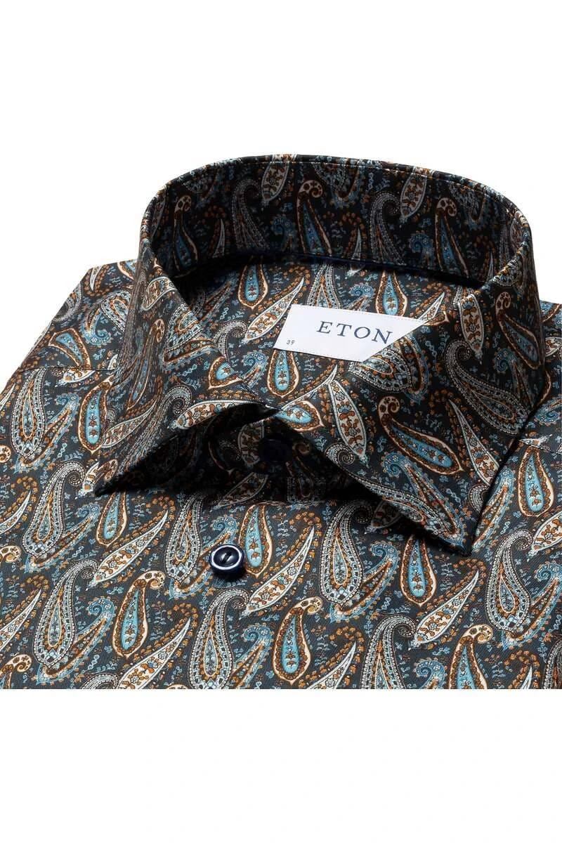 Stil und Komfort mit Tradition. Eton Slim Fit Hemd mit einem Haifischkragen, in der Farbe dunkelblau – Paisley.