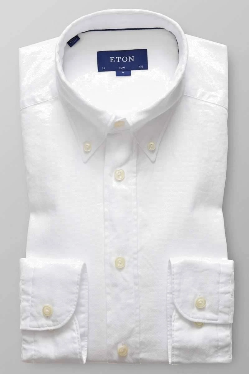Stil und Komfort mit Tradition. Eton Slim Fit Hemd mit einem Button-Downkragen, in der Farbe weiss – Einfarbig.
