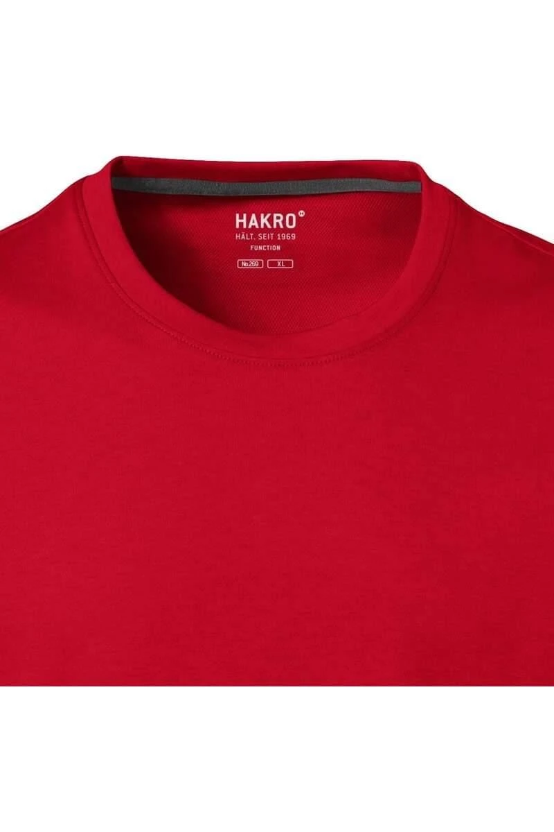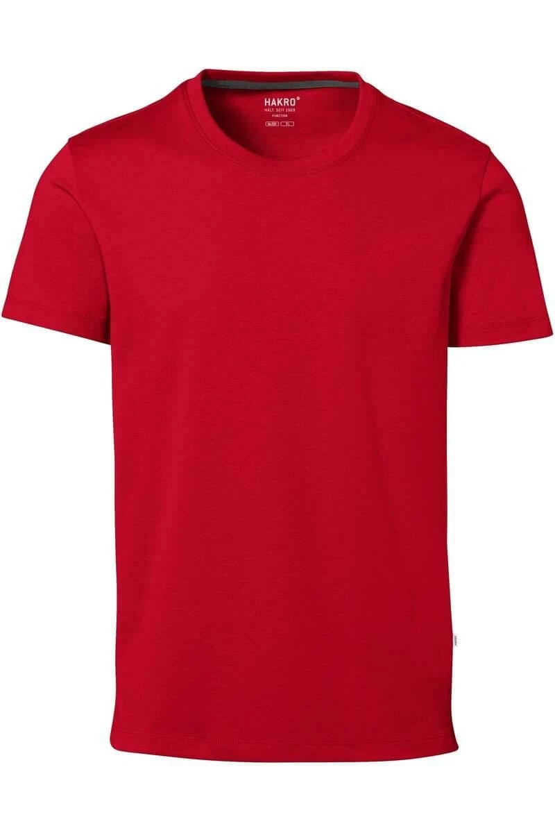 Ein klassisches HAKRO T-Shirt in Regular Fit Passform. Das T-Shirt ist rot – Einfarbig und aus 50% Baumwolle / 50% Polyester hochwertig verarbeitet. HAKRO T-Shirts sind langlebig und bieten einen hohen Tragekomfort.