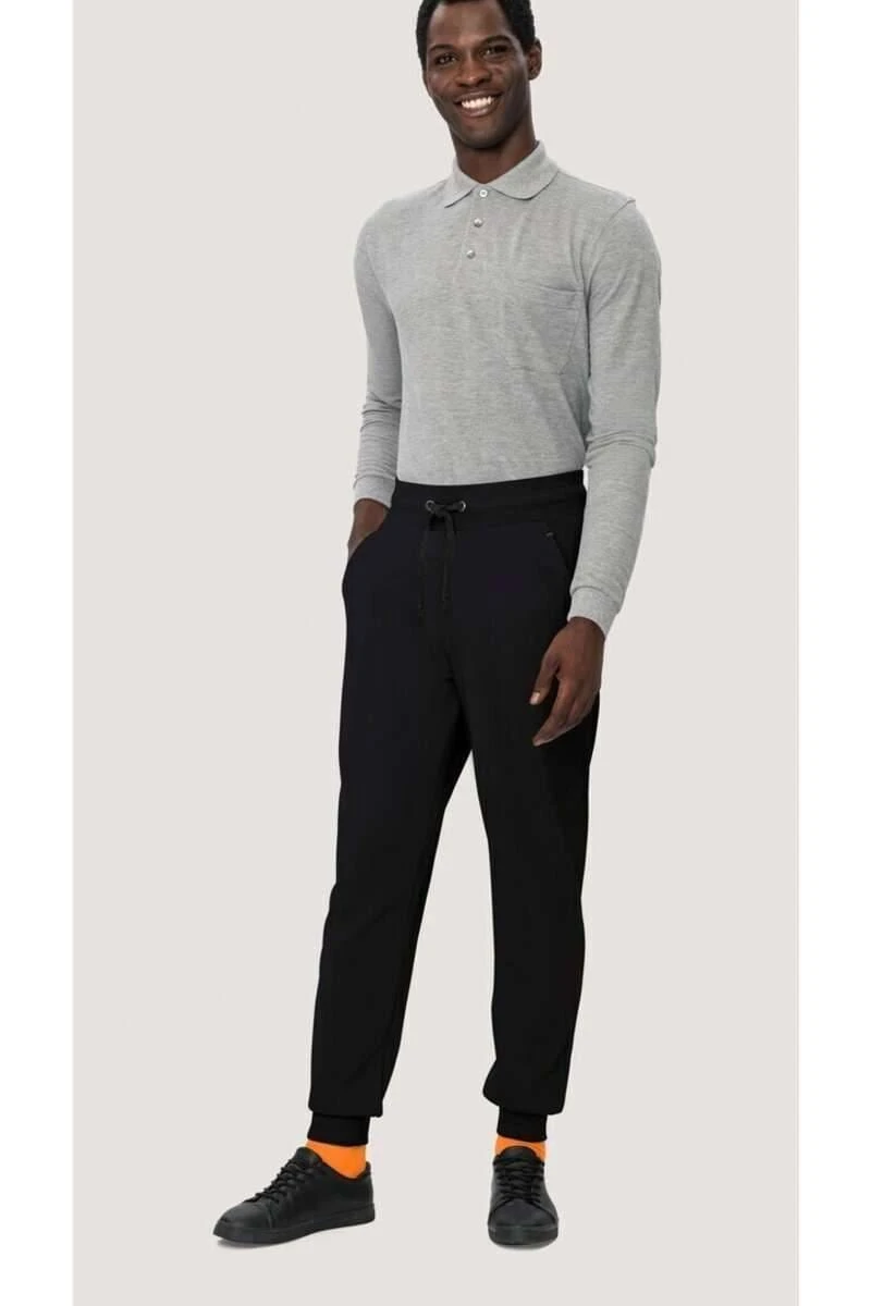 Schöne HAKRO Jogginghose in Regular Fit Passform. Die Jogginghose ist schwarz – Einfarbig und aus 70% Baumwolle / 30% Polester.