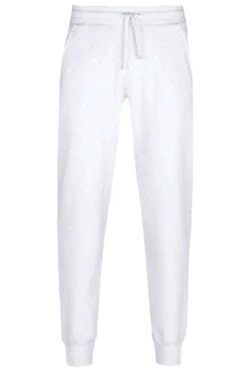 Schöne HAKRO Jogginghose in Regular Fit Passform. Die Jogginghose ist weiss – Einfarbig und aus 70% Baumwolle / 30% Polester.
