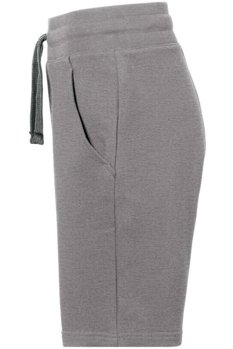 Schöne HAKRO Kurze Jogginghose in Regular Fit Passform. Die Kurze Jogginghose ist grau – Meliert und aus 50% Baumwolle / 50% Polester.
