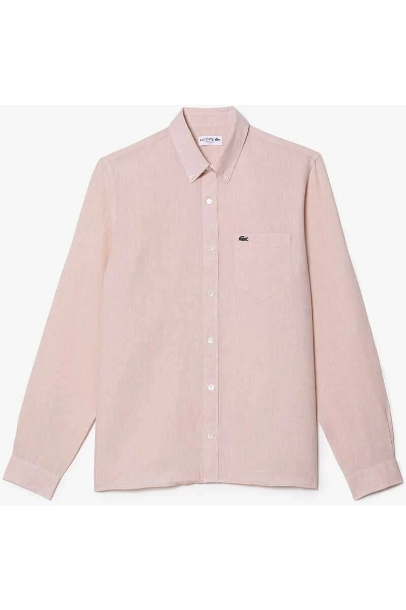 „Lacoste Regular Fit Leinenhemd pink, Einfarbig“