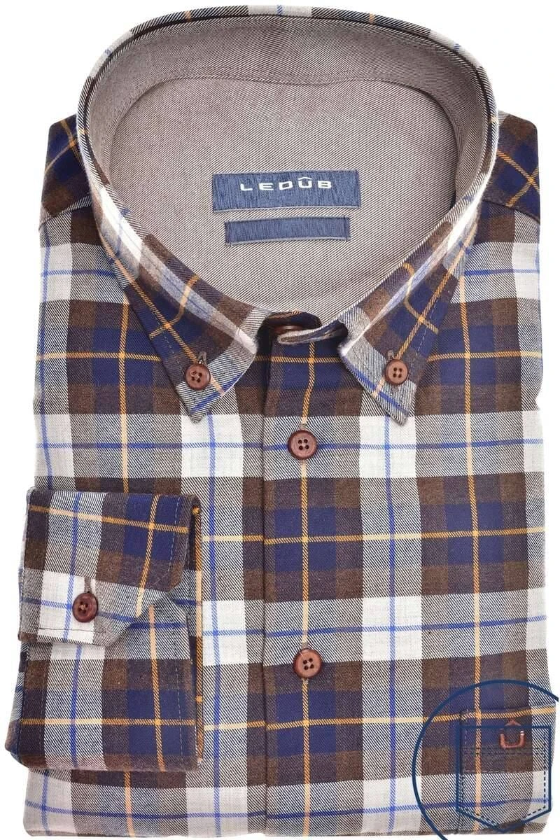 Ein hochwertiges Ledȗb Modern Fit Hemd in der Farbe braun/blau, Kariert. Ledub ist eine auf Hemden spezialisierte Traditionsmarke aus den Niederlanden.