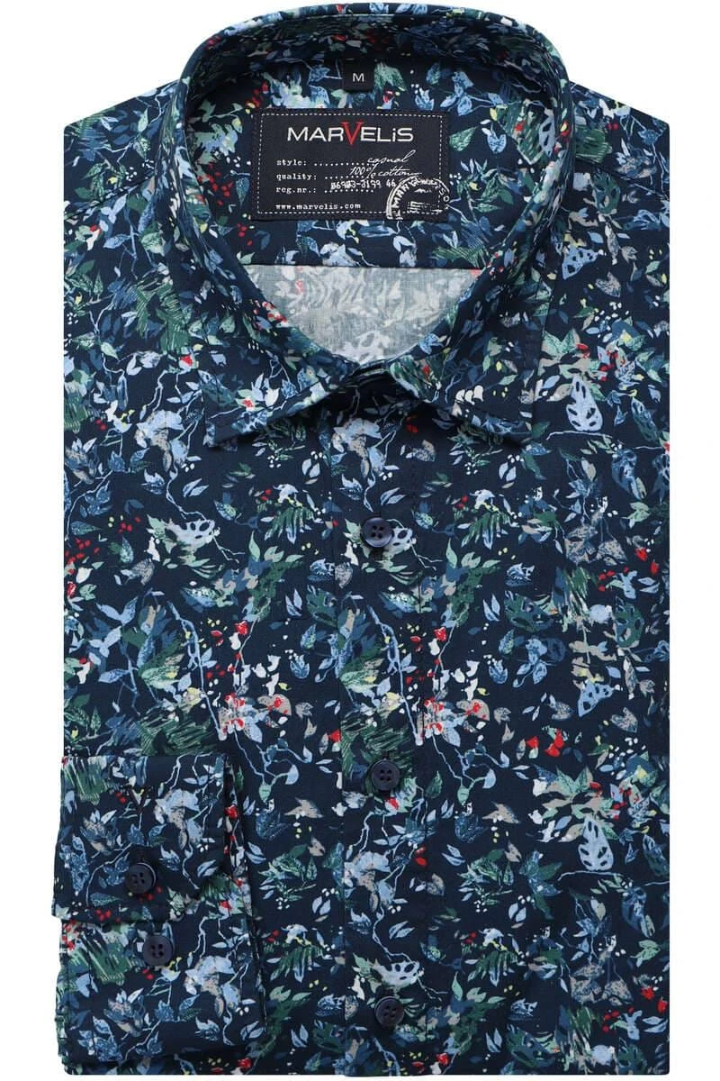 „Marvelis Casual Modern Fit Hemd dunkelblau/grün, Gemustert“