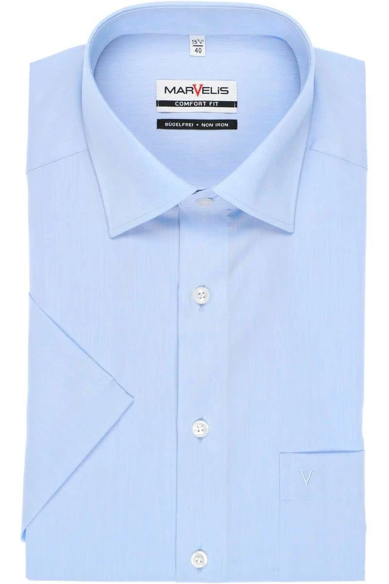 Ein Marvelis Comfort Fit Hemd mit Kurzarm aus einem Uni-Popeline- Stoff, das zudem atmungsaktiv ist, Feuchtigkeit absorbiert und die gefühlte Temperatur am Körper ausgleicht.