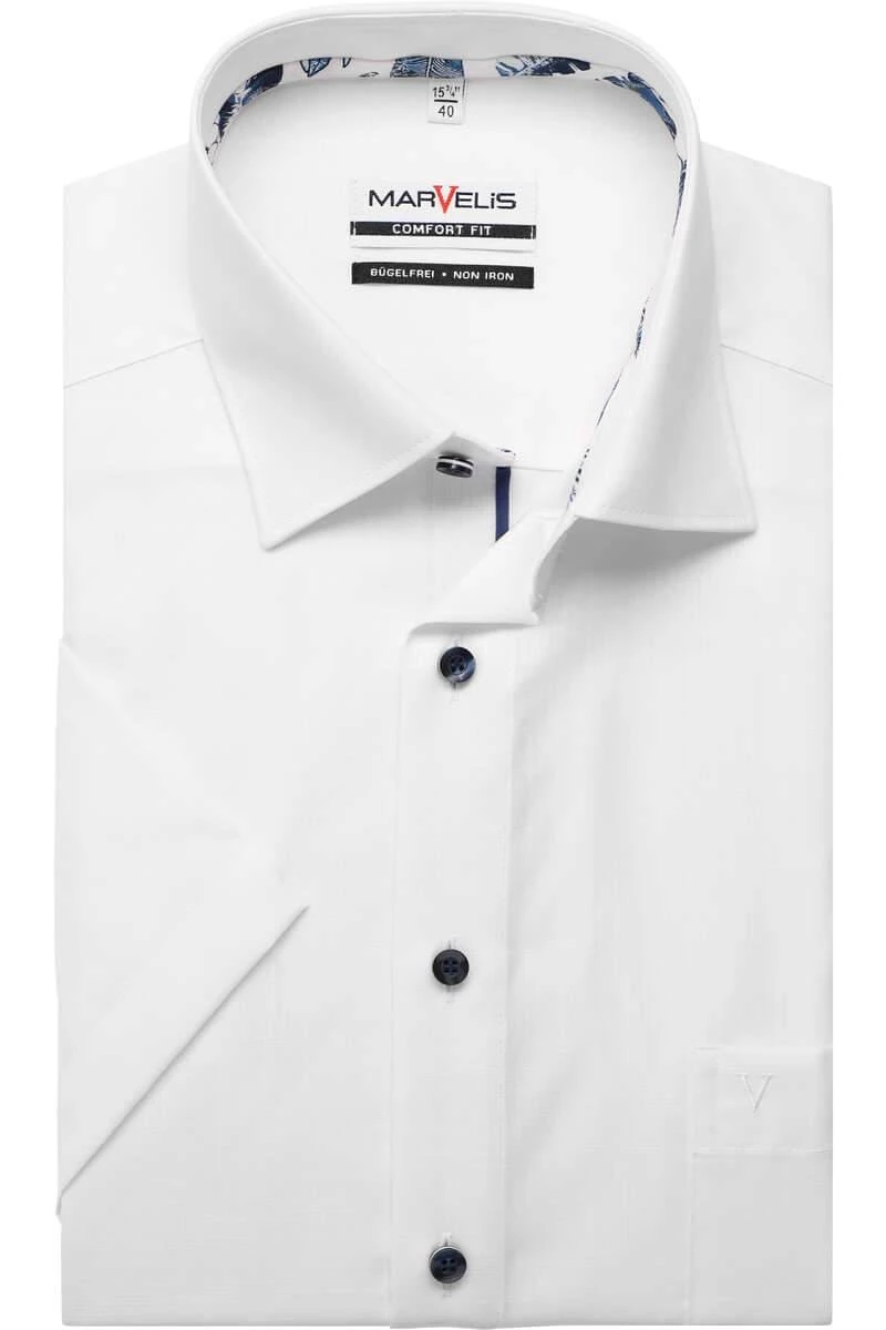 Ein Marvelis Comfort Fit Hemd mit Kurzarm aus einem Popeline- Stoff, das zudem atmungsaktiv ist, Feuchtigkeit absorbiert und die gefühlte Temperatur am Körper ausgleicht.