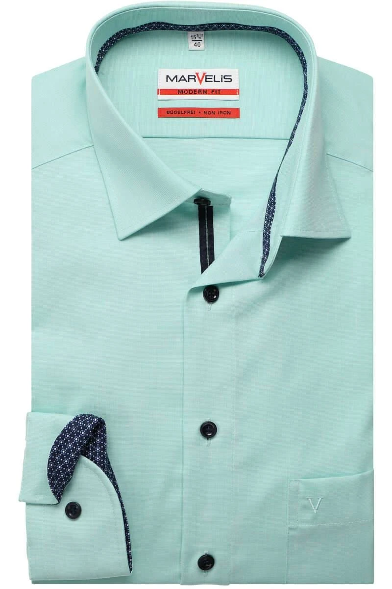 Das Marvelis Modern Fit (früher Marvelis Slim Fit), bügelfreie Hemd mit einem New Kentkragen, in der Farbe hellgrün – Einfarbig. Es ist stets Bügelfrei und ist für seine herausragende Trage- und Pflegeeigenschaften, kompromisslose Qualität sowie den höchsten Tragekomfort bekannt. Zudem geprüft nach Öko-Tex Standard 100.