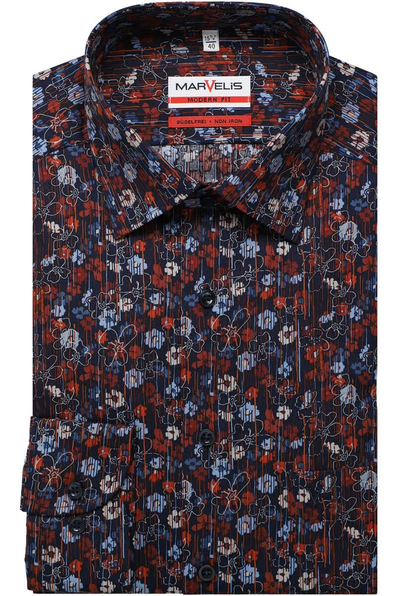 „Marvelis Modern Fit Hemd rot/blau, Gemustert“