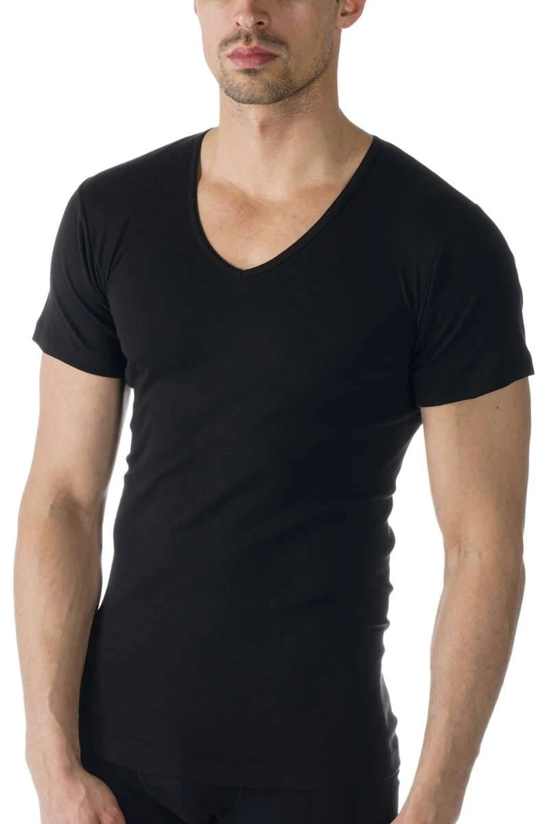 „Mey Casual Cotton Regular Fit T-Shirt V-Ausschnitt schwarz, Einfarbig“