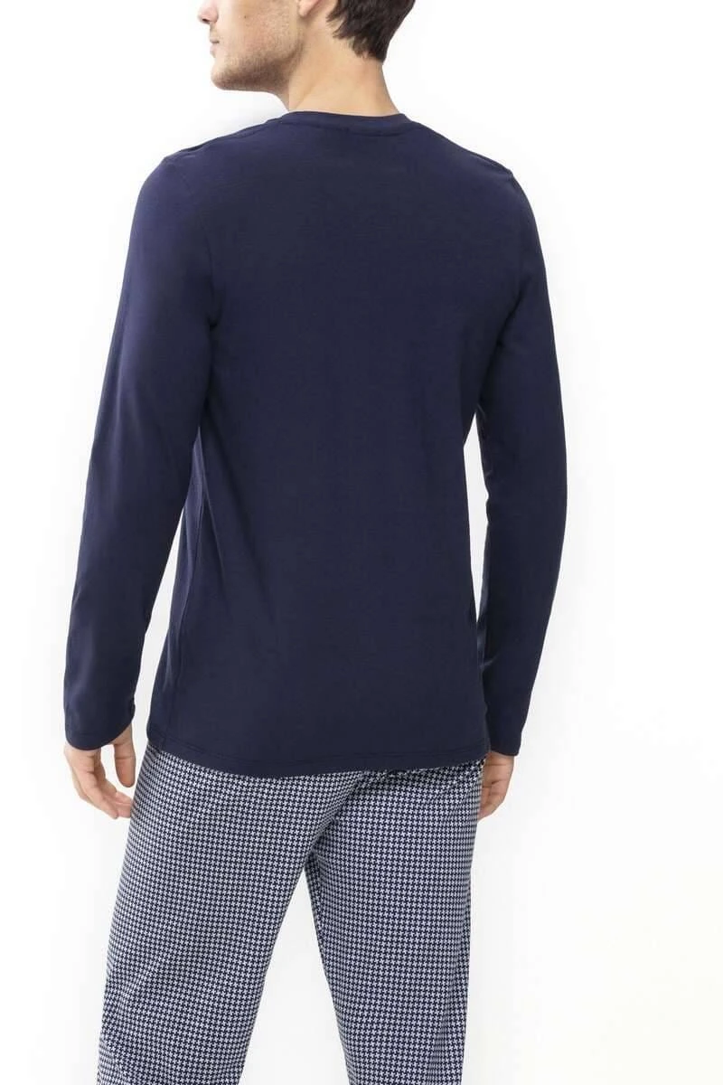 Hochwertige MEY-Henley aus 100% Baumwolle in klassischer Passform, Farbe dunkelblau – Einfarbig. Die hervorragende Verarbeitung bietet höchsten Tragekomfort und sorgt für eine tolle Formstabilität. Der Pullover kann durch seine spezielle Verarbeitung der Wolle sogar in der Waschmaschine gewaschen werden.