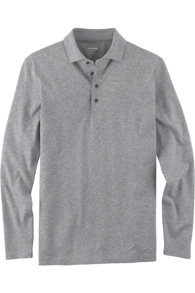 Schönes OLYMP Modern Fit Longsleeve Poloshirt in der Farbe mittelgrau, Einfarbig. Ein tolles, vielseitig kombinierbares Poloshirt von OLYMP, das sehr angenehm zu tragen ist. Das Material ist ein feines Jersey-Gewebe aus 75% Baumwolle / 25% Lyocell.