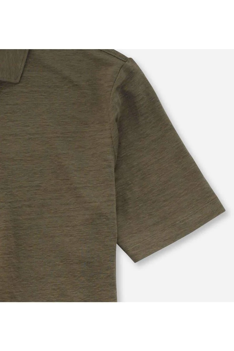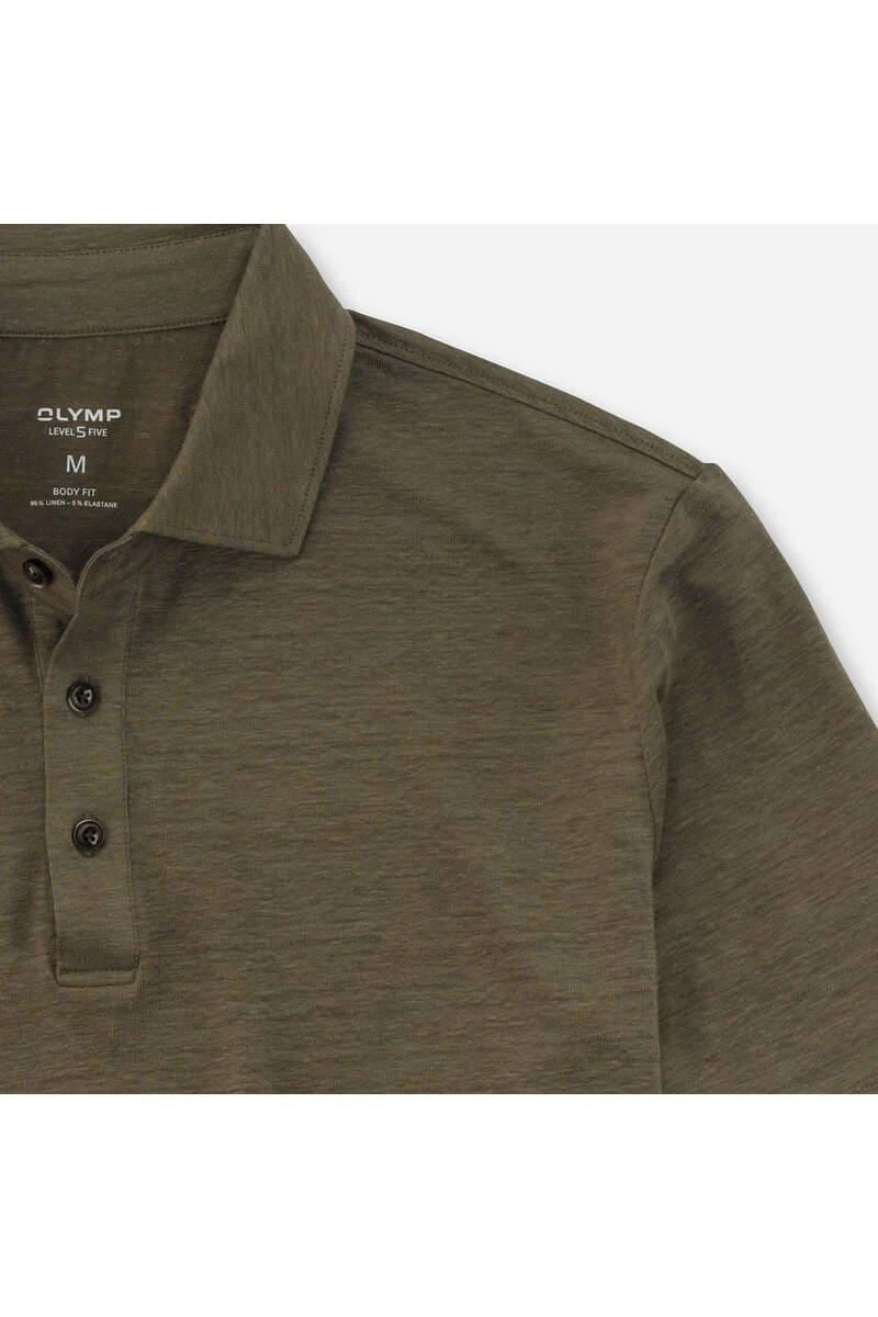 Schönes OLYMP Body Fit Poloshirt in der Farbe oliv, Einfarbig. Ein tolles, vielseitig kombinierbares Poloshirt von OLYMP, das sehr angenehm zu tragen ist. Das Material ist ein feines Jersey-Gewebe aus 95% Leinen / 5% Elasthan.