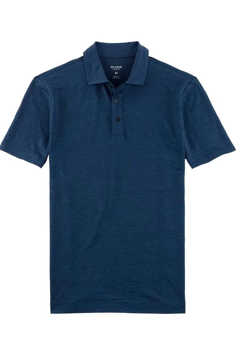 Schönes OLYMP Body Fit Poloshirt in der Farbe rauchblau, Einfarbig. Ein tolles, vielseitig kombinierbares Poloshirt von OLYMP, das sehr angenehm zu tragen ist. Das Material ist ein feines Leinen-Gewebe aus 95% Leinen / 5% Elasthan.