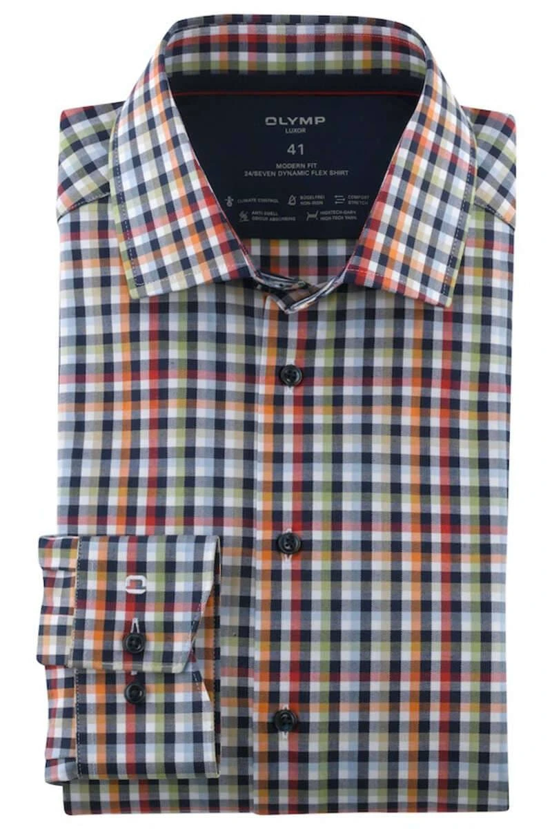 „OLYMP Luxor 24/Seven Modern Fit Hemd blau/rot/weiss, Kariert“