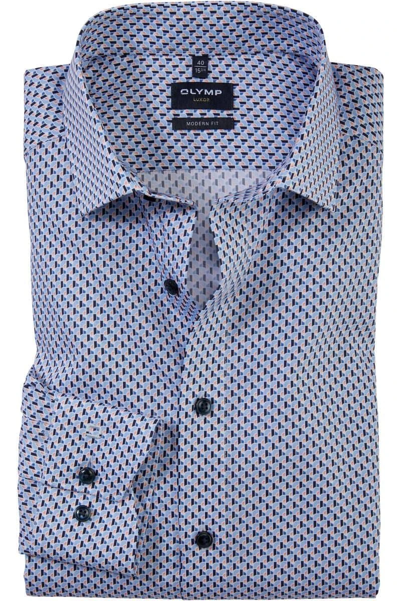 „OLYMP Luxor Modern Fit Hemd blau/orange, Gemustert“