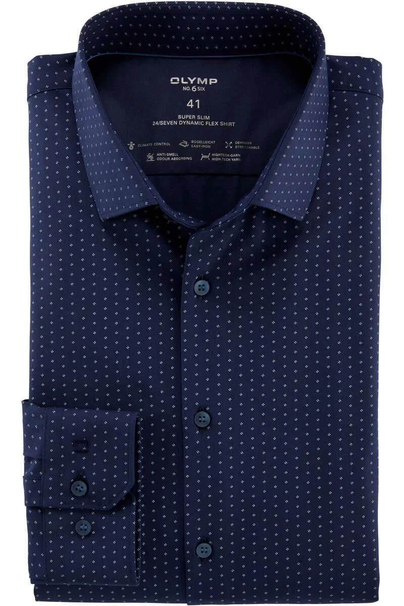 „OLYMP No. Six 24/Seven Dynamic Flex Super Slim Hemd marine/bleu, Gemustert“