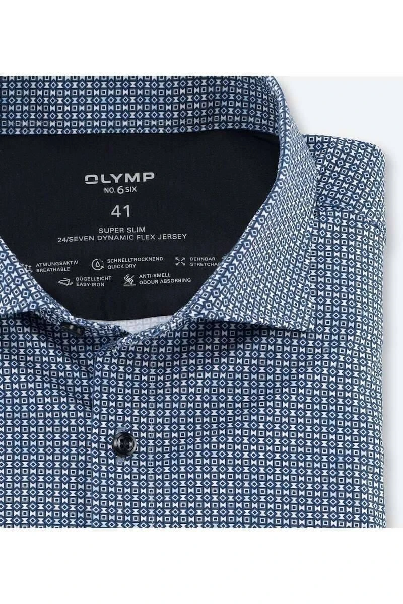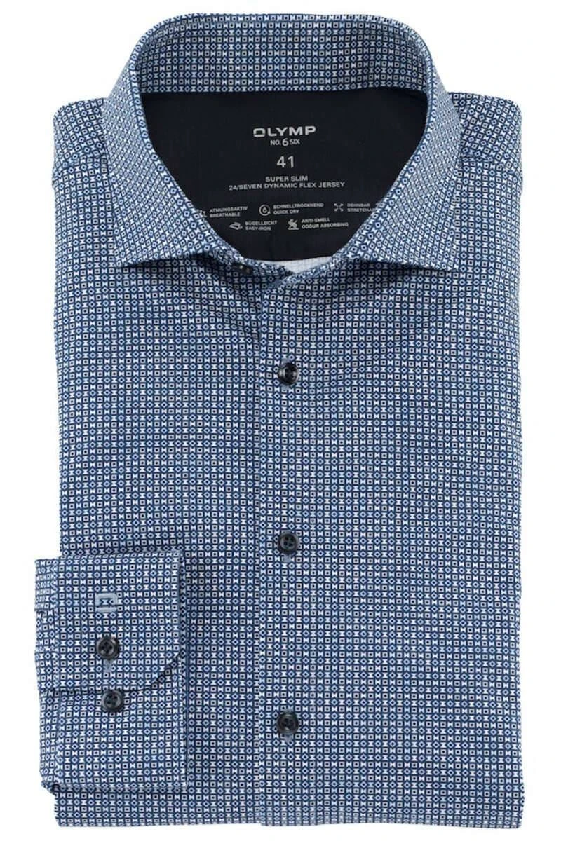 „OLYMP No. Six 24/Seven Super Slim Jerseyhemd royal/weiss, Gemustert“