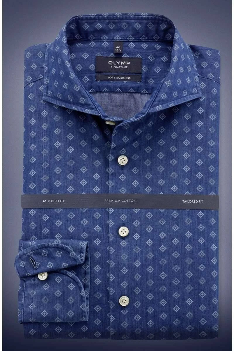 „OLYMP SIGNATURE Soft Business Tailored Fit Hemd blau, Gemustert“
