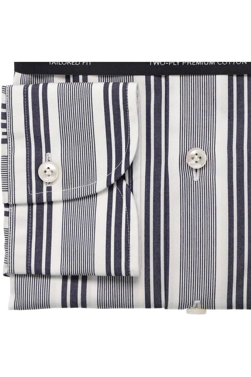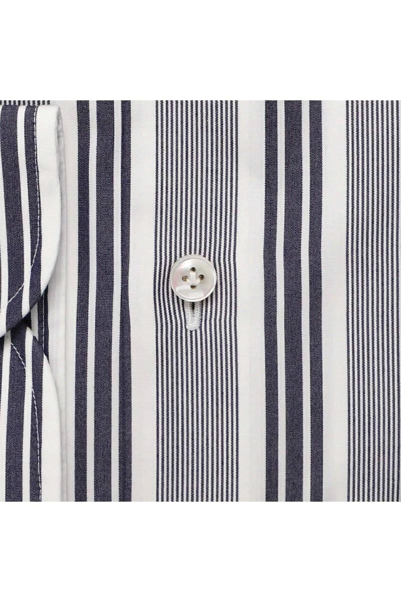 Das OLYMP SIGNATURE Tailored Fit Hemd mit einem Haifischkragen, in der Farbe dunkelblau/weiss – Gestreift. Es ist stets Pflegeleicht und ist für seine herausragende Trage- und Pflegeeigenschaften, kompromisslose Qualität sowie den höchsten Tragekomfort bekannt.