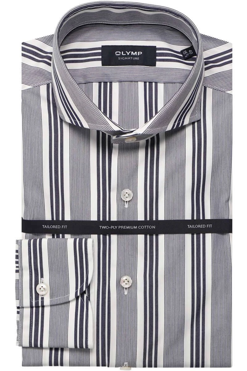 „OLYMP SIGNATURE Tailored Fit Hemd dunkelblau/weiss, Gestreift“