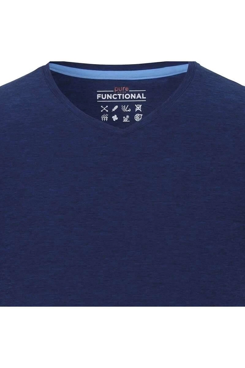 „Pure Functional Slim Fit T-Shirt V-Ausschnitt dunkelblau, Einfarbig“