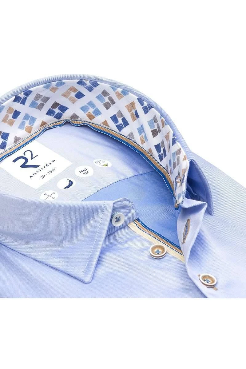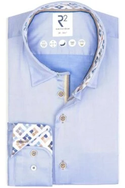 Ein schönes R2 Amsterdam Modern Fit Hemd in der Farbe hellblau, Einfarbig. R2 ist eine auf Hemden mit modischem Design spezialisierte Marke aus Amsterdam.