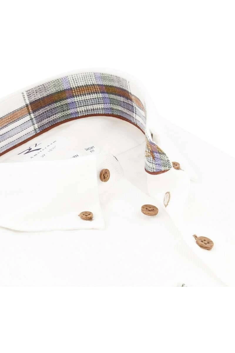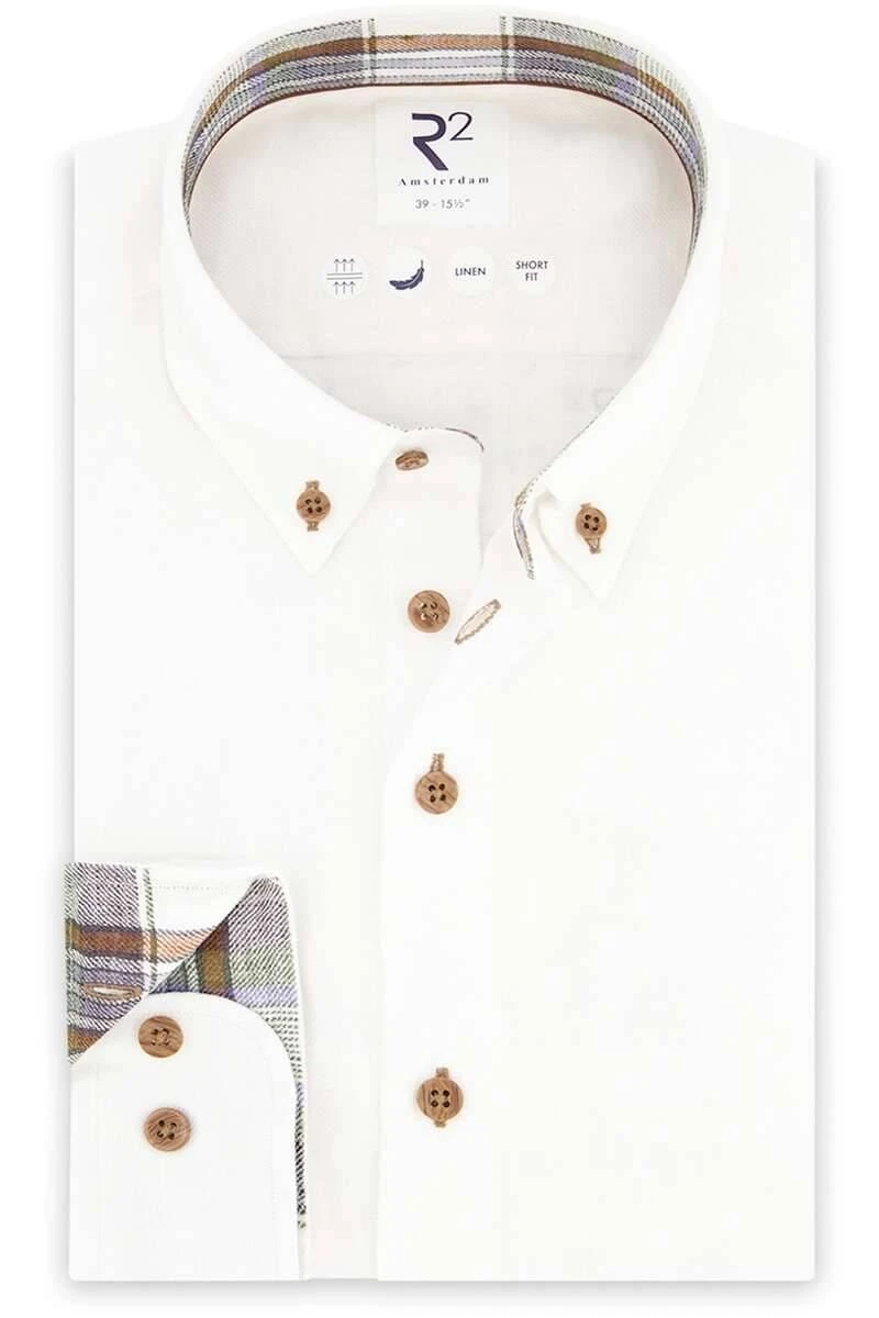Ein schönes R2 Amsterdam Modern Fit Leinenhemd in der Farbe weiss, Einfarbig. R2 ist eine auf Hemden mit modischem Design spezialisierte Marke aus Amsterdam.