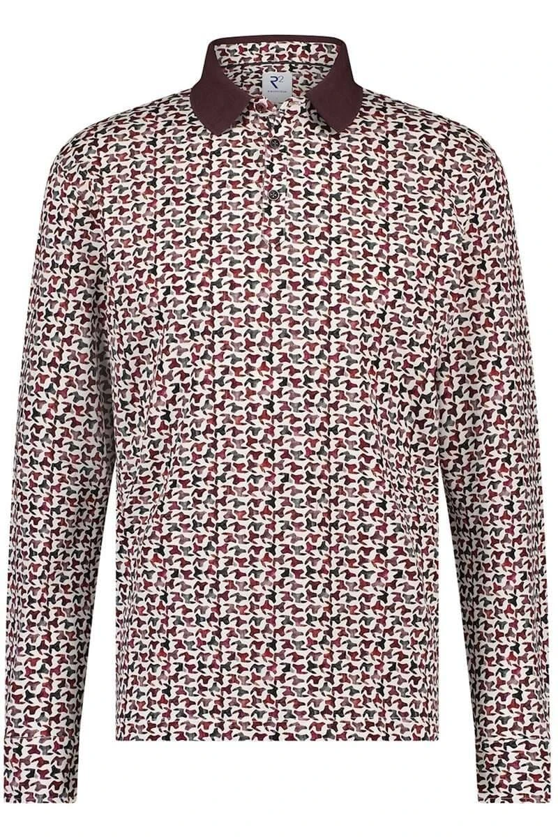 „R2 Amsterdam Modern Fit Longsleeve Poloshirt rot/weiss, Gemustert“