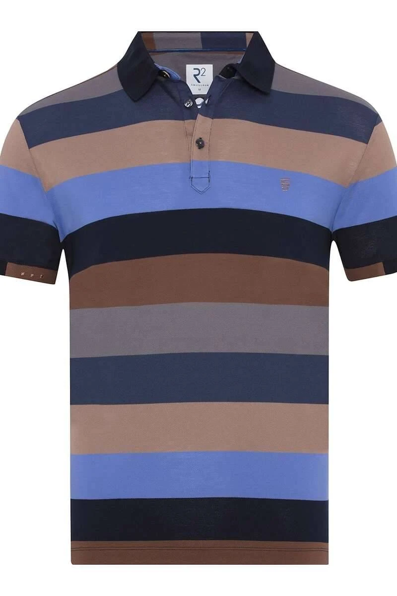 Schönes R2 Amsterdam Modern Fit Poloshirt in der Farbe blau/braun, Querstreifen. Ein tolles, vielseitig kombinierbares Poloshirt von R2 Amsterdam, das sehr angenehm zu tragen ist. Das Material ist ein feines Piqué-Gewebe aus 100% Baumwolle.