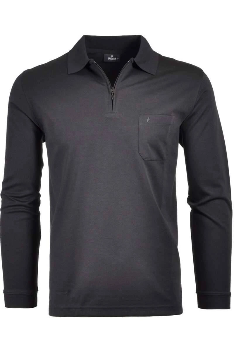 „RAGMAN Modern Fit Longsleeve Poloshirt schwarz, Einfarbig“