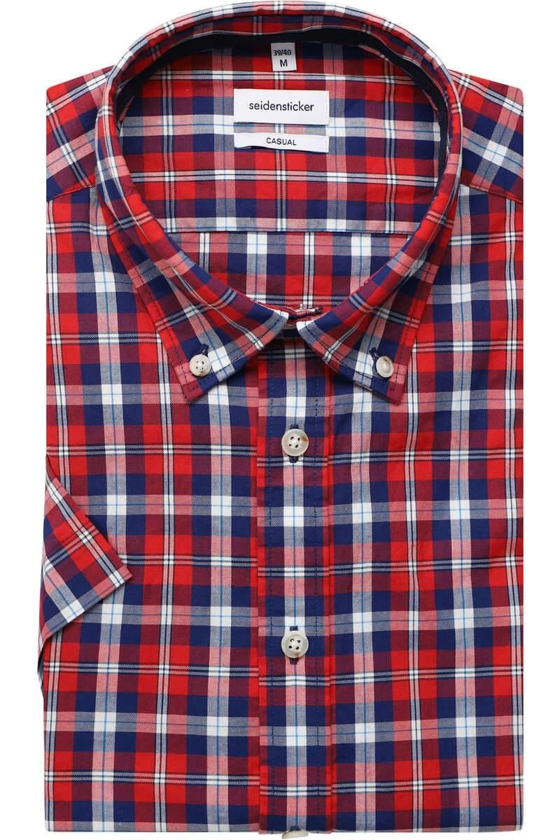 Das Seidensticker Regular Fit Hemd mit Button-Down-Kragen hier in der Farbe blau/rot – Kariert.
