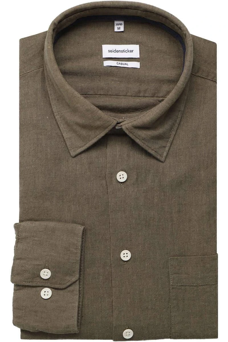 „Seidensticker Casual Regular Fit Leinenhemd dunkelgrün, Einfarbig“