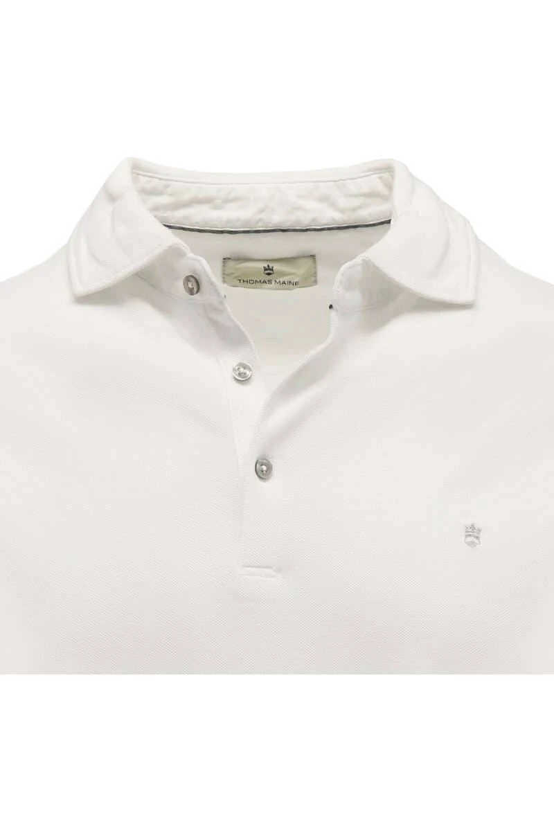 Hochwertiges Thomas Maine Tailored Fit Poloshirt in der Farbe ecru, Einfarbig. Ein tolles, vielseitig kombinierbares Poloshirt von Thomas Maine, das sehr angenehm zu tragen ist. Das Material ist ein feines Piqué-Gewebe aus 100% Baumwolle.