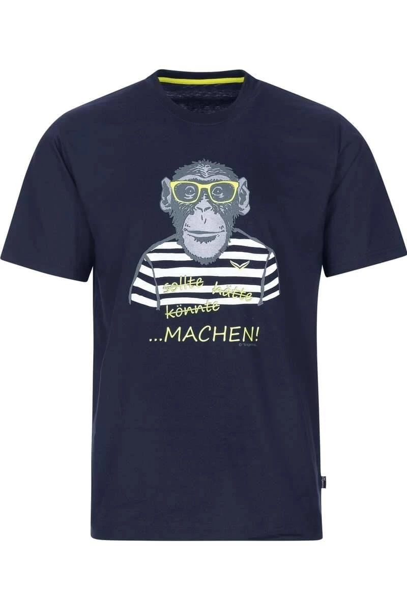 Das TRIGEMA T-Shirt in der Farbe navy, bedruckt für Männer.