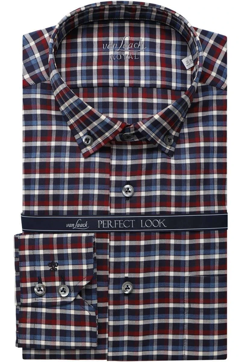 Tragekomfort und Passform in Perfektion. Das Tailor Fit Hemd von van Laack mit einem Button-Downkragen, in der Farbe marine/weiss – Kariert.