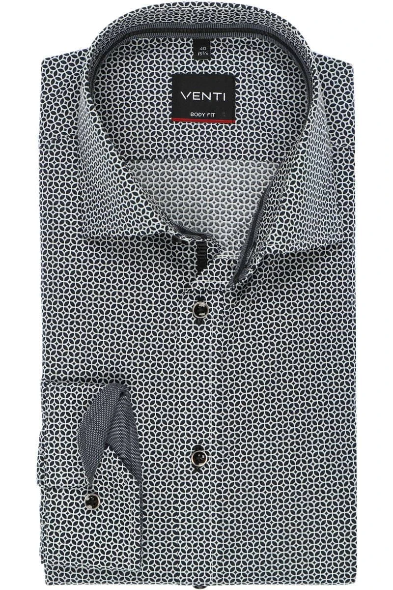 „Venti Body Fit Hemd schwarz, Gemustert“