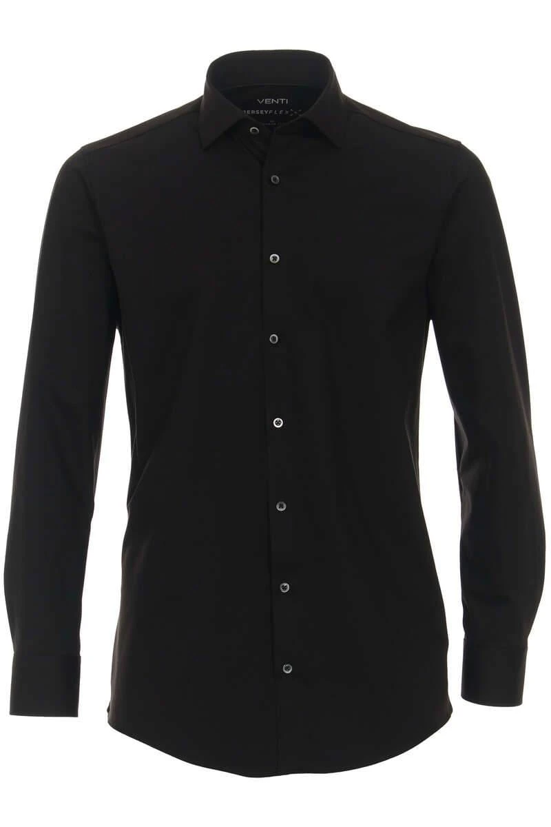 Das Venti Modern Fit Hemd aus Jersey Stoff, hier in der Farbe schwarz – Einfarbig.
